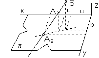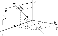 ktorý je priesečníkom premietacej priamky sA, A ∈ sA zo smeru s prechádzajúcej bodom A s priemetňou